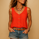 تقدم هذه القميص بدون أكمام بحواف على شكل V قصّة واسعة ومريحة. متوفر بعدة ألوان، يناسب جميع ملابسك. مثالي للأيام الحارة، يجمع بين الأناقة والراحة.