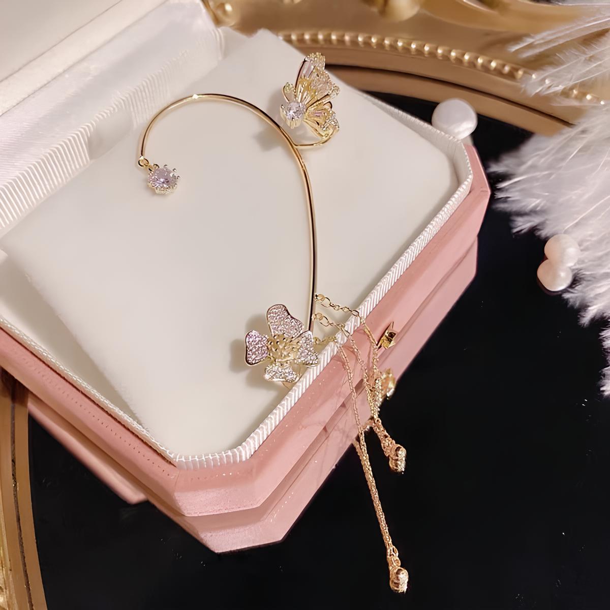 ألكسندرا | أقراط زهرية مع فراشة متلألئة