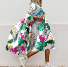 هذا الفستان الواسع المزهر يجذب الانتباه بقصته الواسعة التي تبرز القوام بينما توفر حرية حركة كبيرة. أكمامه المنتفخة التي تصل إلى ثلاثة أرباع تضيف لمسة أنثوية راقية، مثالية لأسلوب أنيق ولكنه سهل الارتداء. مثالي لأيامك المشمسة، يناسب أيضًا الخروجات غير الرسمية وكذلك اللحظات الأكثر أناقة.