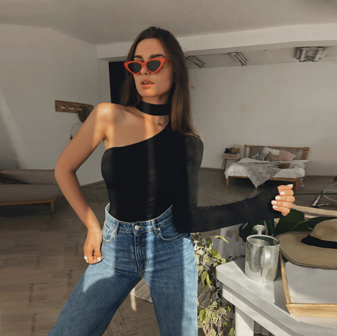 تظهر هذه القمة غير المتناظرة قوامك بشكل أصلي مع الحفاظ على لمسة أنيقة. توفر قصتها الهيكلية وقماشها السلس توازنًا مثاليًا بين الراحة والأناقة. مثالية لمن ترغب في التميز برقة.