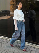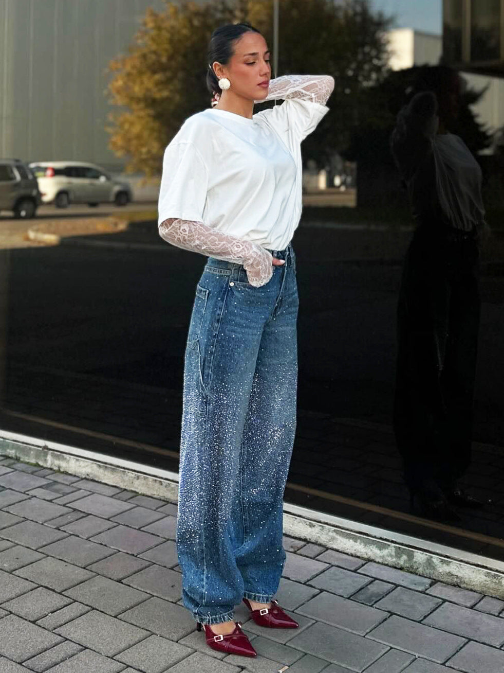 Diese lässig geschnittene Hose bietet eine weite Silhouette und optimalen Komfort für den Alltag. Ihre glänzenden Details verleihen eine diskrete Eleganz. Perfekt für einen trendigen und originellen Look.