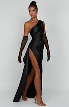 Ναΐς | Μακριά Ασύμμετρη Βραδινή Φόρεμα με Σχίσιμο