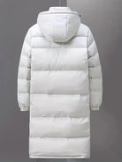 Tämä naisten pitkä hupullinen takki tarjoaa ympäröivää lämpöä säilyttäen samalla modernin ja kaupunkimaisen ilmeen. Suunniteltu kylmiin päiviin, se yhdistää mukavuuden, suojan ja tyylikkyyden kaikissa olosuhteissa. Sen selkeä muotoilu mukautuu helposti talvivaatteisiisi tyylikkään ja rentouttavan ilmeen saavuttamiseksi.