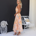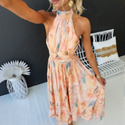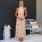 Katya | Pitkä Boheemi Mekko – Halterneck ja Elegantti Kukkaprintti