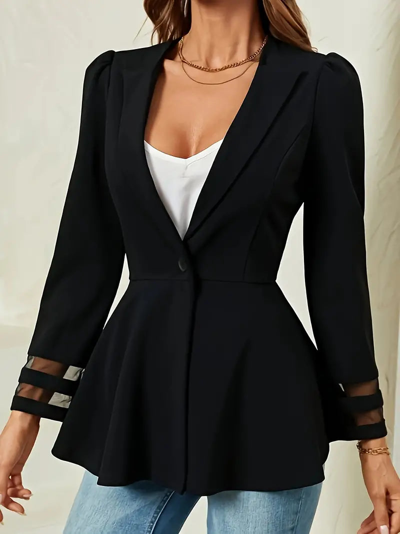 הז'קט השחור המודגש מדגיש את הסילואטה בסגנון ובאצילות. החיתוך המובנה מעניק מראה מסודר, אידיאלי ליום-יום כמו גם לאירועים מיוחדים. דגם נצחי שמשלב מודרניות וביטחון.