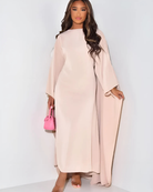 このロングドレスは、流れるようなシルエットと丁寧なディテールで優雅さと女性らしさを体現しています。クラシックなラウンドネックとドレープ袖が、柔らかさの中に洗練さを加えています。式典、フォーマルなディナー、またはエレガントな夜に最適です。