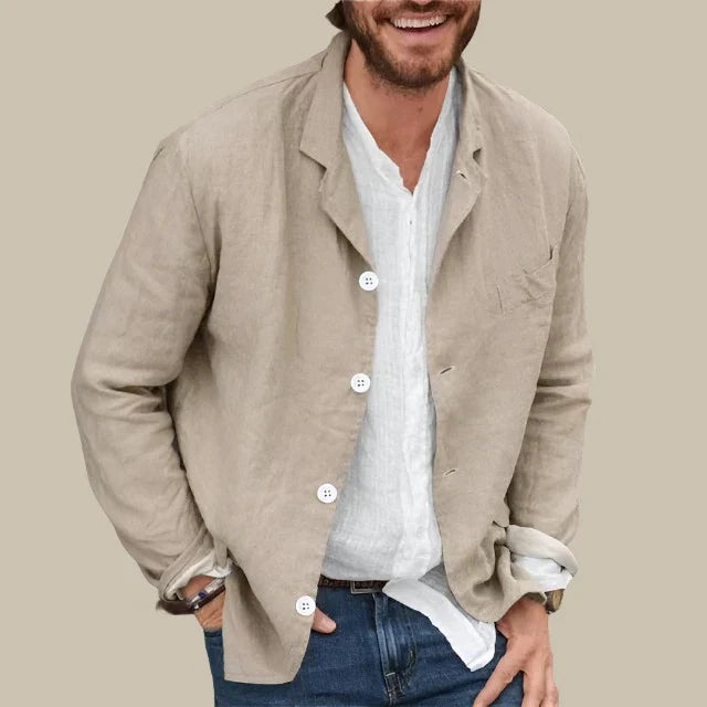 Tento blazer spája eleganciu a ľahkosť pre slnečné dni. Jeho uvoľnený, ale starostlivo strihaný strih zvýrazňuje siluetu a zároveň zaručuje optimálne pohodlie. Navrhnutý s kvalitnými materiálmi, zabezpečuje dobrú ventiláciu a prirodzený štýl.