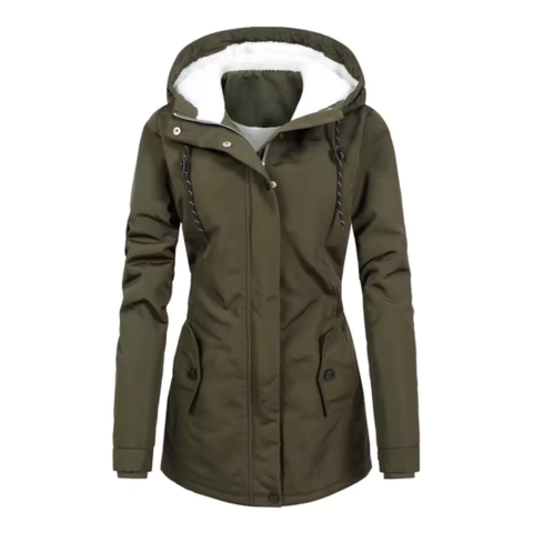 Sania | Lång Jacka Dam — Huva Med Snörning Och Knappade Fickor